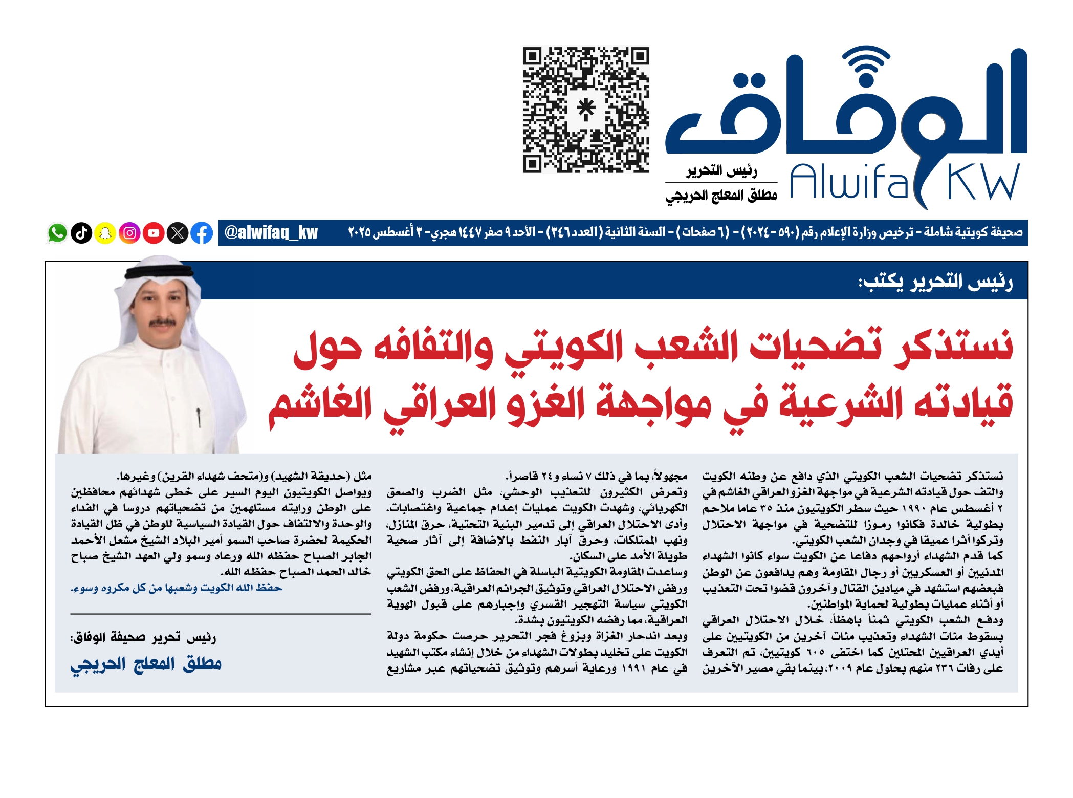 صحيفة الوفاق العدد 11 يوم 1 يوليو 2024