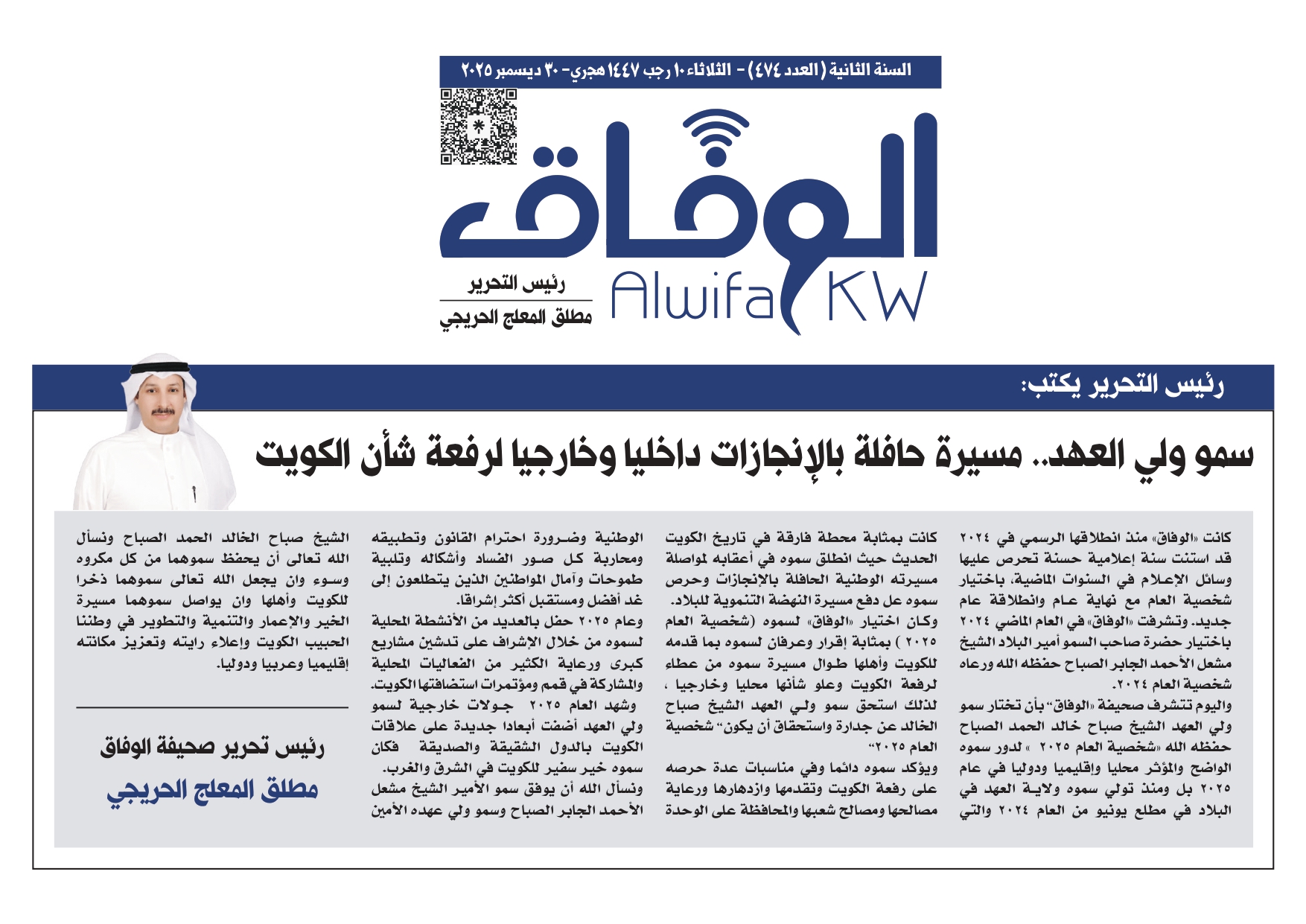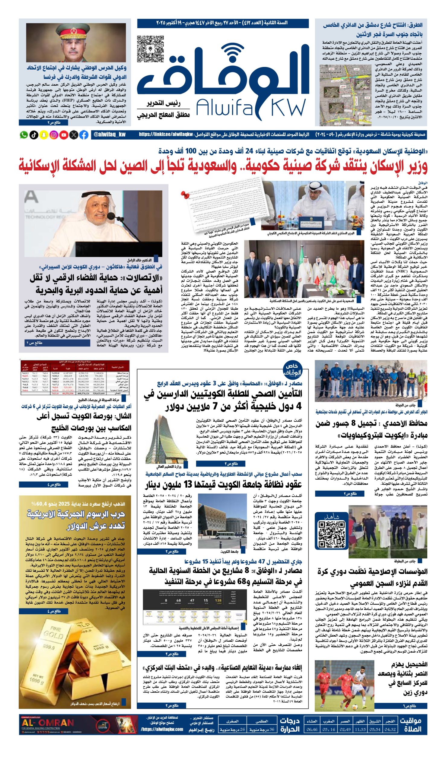 الرئيسية/الوفاق PDF الوفاق PDFصحيفة الوفاق العدد 1المقال الافتتاحي الاول العدد 1مقال الثانوية العامة 14 يونيو 2024صحيفة الوفاق العدد 4 رئيس التحرير يكتب الوفاق صوت من أجل الوطن العدد 4صحيفة الوفاق العدد الخامس 24 يونيو 2024صحيفة الوفاق العدد 6صحيفة الوفاق العدد 8 يوم 27 و 28 يونيو 2024صحيفة الوفاق العدد 11 يوم 1 يوليو 2024صحيفة الوفاق العدد 9 صحيفة الوفاق العدد 12صحيفة الوفاق العدد 14 بتاريخ 5 و 6 يوليو 2024صحيفة الوفاق العدد 17 بتاريخ 9 يوليو 2024الوفاق العدد 20 بتاريخ 12و13 يوليو 2024صحيفة الوفاق العدد الثالث 22 يونيو 2024صحيفة الوفاق العدد الثاني 20و21 يونيو 2024صحيفة الوفاق العدد 7 يوم 26 يونيو 2024صحيفة الوفاق العدد 10 يوم 30 يونيو 2024صحيفة الوفاق العدد 13 يوم 4 يوليو 2024صحيفة الوفاق العدد 15 صحيفة الوفاق العدد 16 بتاريخ 8 يوليو 2024صحيفة الوفاق العدد 18 صحيفة الوفاق العدد 19 بتاريخ 11 يوليو 2024الوفاق العدد 22 بتاريخ 15 يوليو 2024الوفاق العدد 23الوفاق العدد 24الوفاق العدد 25 بتاريخ 18 يوليو 2024الوفاق العدد 23 بتاريخ 16 يوليو 2024الوفاق العدد 26 يوم 19 و 20 يوليو 2024الوفاق العدد 27 العدد 28العدد 29الوفاق العدد 30 الوفاق العدد 31ملحق العدد 31 تقرير عن قرارات مجلس الوزراءالوفاق العدد 32 العدد 33الوفاق العدد 34الوفاق العدد 35الوفاق العدد 36الوفاق العدد 37 الوفاق العدد 38الوفاق العدد 39الوفاق العدد 40الوفاق العدد 41الوفاق العدد 42الوفاق العدد 43الوفاق العدد 44الوفاق العدد 45الوفاق العدد 46الوفاق العدد 47فقيد الكويت سمو الشيخ سالم العليالوفاق العدد 48الوفاق العدد 49الوفاق العدد 50الوفاق العدد 51الوفاق العدد 52الوفاق العدد 53الوفاق العدد 54تقرير – الإصلاحات الاقتصادية الشاملةالوفاق العدد 55الوفاق العدد 56الوفاق العدد 57الوفاق العدد 58الوفاق العدد 59الوفاق العدد60الوفاق العدد 61الوفاق العدد 62الوفاق العدد 63الوفاق العدد 64الوفاق العدد 65الوفاق العدد 66الوفاق العدد 67الوفاق العدد 68الوفاق العدد 69الوفاق العدد 70الوفاق العدد 71الوفاق العدد 72الوفاق العدد 73الوفاق العدد 74الوفاق العدد 75الوفاق العدد 76الوفاق العدد 77الوفاق العدد 78الوفاق العدد 79تقرير شهادة نجاح دولية جديدة للاقتصاد الكويتيالوفاق العدد 80الوفاق العدد 81الوفاق العدد 82كلمة ولي العهد في الأمم المتحدة 22 سبتمبر 2024الوفاق العدد 83الوفاق العدد 84الوفاق العدد 85الوفاق العدد 86كلمة سمو ولي العهد بالأمم المتحدة 26 سبتمبر 2024الوفاق العدد 87 الوفاق العدد 88الوفاق العدد 89الوفاق العدد 90تقرير محطات في السياسية الخارجية منذ تولي سمو الامير الحكم 1 أكتوبر 2024الوفاق العدد 91كلمة سمو ولي العهد أمام قمة التعاون الآسيويالوفاق العدد 92الوفاق العدد 93الوفاق العدد 94الوفاق العدد 95رئيس التحرير يكتب بني غانم أهل الفزعات العدد 95الوفاق العدد 96الوفاق العدد 97الوفاق العدد 98الوفاق العدد 99الوفاق العدد 100رئيس التحرير يكتب 100 يوم من الوفاق العدد 100الإصدار التذكاري التوثيقي الأول لصحيفة الوفاق الأعداد من 1 الى100الوفاق العدد 101الوفاق العدد 102الوفاق العدد 103الوفاق العدد 104الوفاق العدد 105الوفاق العدد 106الوفاق العدد 107الوفاق العدد 108الوفاق العدد 109الوفاق العدد 110الوفاق العدد 111الوفاق العدد 112الوفاق العدد 113الوفاق العدد 114الوفاق العدد 115الوفاق العدد 116الوفاق العدد 117رئيس التحرير يكتب التحرير الثاني للكويت الوفاق العدد 117الوفاق العدد 118الوفاق العدد 119الوفاق العدد 120الوفاق العدد 121الوفاق العدد 122الوفاق العدد 123الوفاق العدد 124الوفاق العدد 125الوفاق العدد 126الوفاق العدد 127الوفاق العدد 128الوفاق العدد 129الوفاق العدد 130الوفاق العدد 131الوفاق العدد 132الوفاق العدد 133الوفاق العدد 134الوفاق العدد 135الوفاق العدد 136الوفاق العدد 137الوفاق العدد 138الوفاق العدد 139الوفاق العدد 140الوفاق العدد 141الوفاق العدد 142الوفاق العدد 143الوفاق العدد 144الوفاق العدد 145الوفاق العدد 146الوفاق العدد 147الوفاق العدد 148الوفاق العدد 149الوفاق العدد 150الوفاق العدد 151 ص 1الوفاق العدد 151 ص 2الوفاق 
