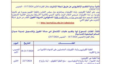 أعلن القائم بأعمال عميد القبول والتسجيل بجامعة الكويت د ..فاضل عباس عزيز عن بدء عملية تقديم طلبات الالتحاق بجامعة الكويت…