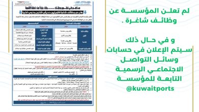 نفت مؤسسة الموانئ الكويتية صحة ما يتم ترويجه على مواقع التواصل الاجتماعي من شائعة عن قيامها بالإعلان عن وظائف شاغرة…