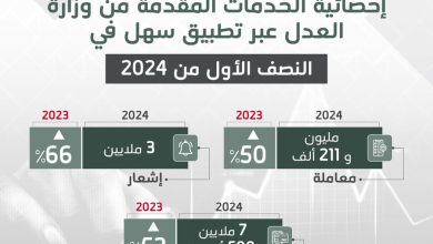 إنجاز أكثر من مليون و211 ألف معاملة إلكترونية أعلنت وزارة العدل ، عن إحصائية الخدمات المقدمة عبر «سهل» خلال النصف…