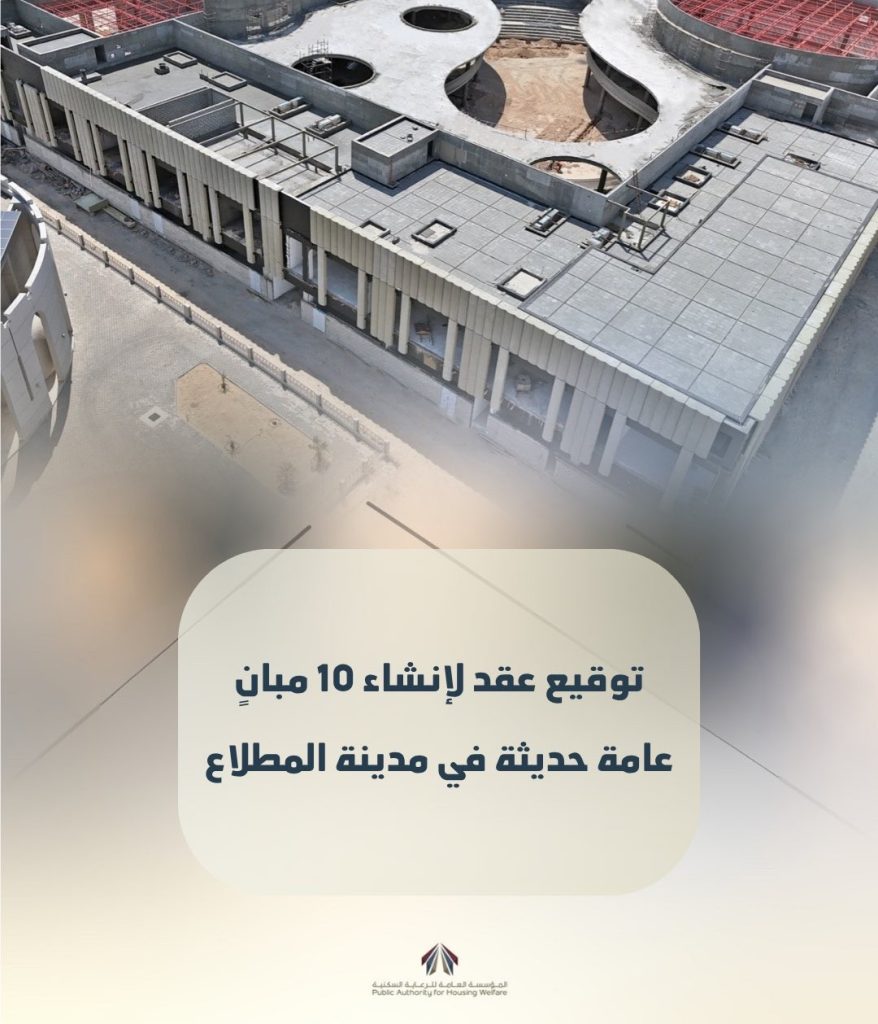 المؤسسة العامة للرعاية السكنية توقع عقدًا بقيمة 19.12 مليون دينار لإنشاء 10 مبانٍ عامة وأعمال الخدمات والبنية التحتية بمركز الضاحية «إن 12» في مدينة المطلاع السكنية