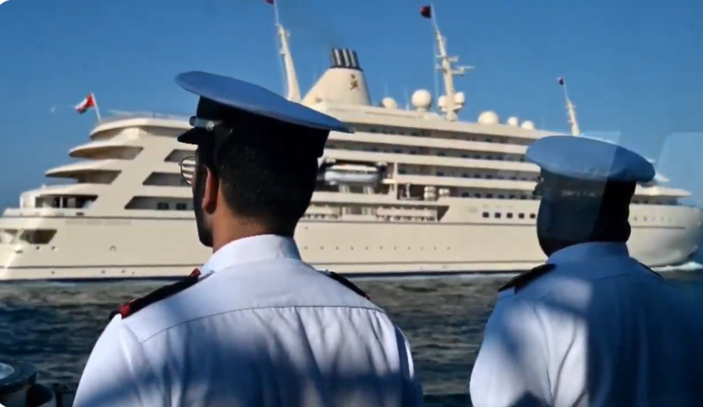 طاقم الزورق الكويتي أدى التحية العسكرية البحرية لليخت السلطاني (فلك السلامة)