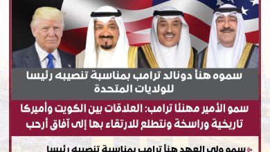سمو الأمير مهنئا ترامب: العلاقات مع الولايات المتحدة تاريخية وراسخة ونتطلع للارتقاء بها إلى آفاق أرحب