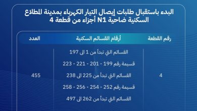 الكهرباء: بدء استقبال طلبات إيصال التيار لـ 455 قسيمة بالضاحية N1 في المطلاع