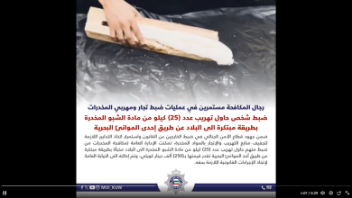تمكنت الإدارة العامة لمكافحة المخدرات من ضبط متهم حاول تهريب 25 كيلوغراماً من مادة الشبو المخدرة إلى البلاد. وذكرت وزارة…