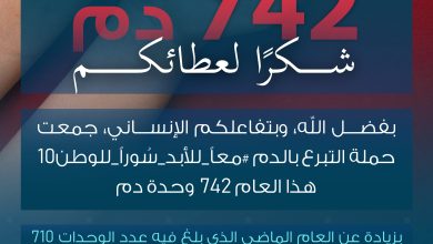 -    الصحة: جمع 742 وحدة دم في حملة التبرع بالدم “معاً للأبد – سوراً للوطن 10 “أعلنت إدارة خدمات نقل الدم بوزارة الصحة عن جمع 742 وحدة دم خلال حملة التبرع بالدم (معا للأبد – سورا… أكمل القراءة »