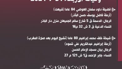 مشاركة عزاء | “الوفاق” تنعي فقيد آل الصباح الشيخ محمد عبد العزيز حمود الجراح الصباح