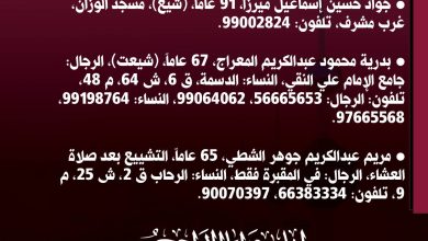 كونا – ينعى الديوان الأميري المغفور له بإذن الله تعالى سمو الشيخ جابر مبارك الحمد المبارك الصباح عن عمر يناهز…