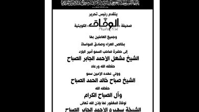 ((يَا أَيَّتُهَا النَّفْسُ الْمُطْمَئِنَّةُ ارْجِعِي إِلَى رَبِّكِ رَاضِيَةً مَرْضِيَّةً فَادْخُلِي فِي عِبَادِي وَادْخُلِي جَنَّتِي)) تتقدم صحيفة (الوفاق) الكويتية وجميع العاملين…