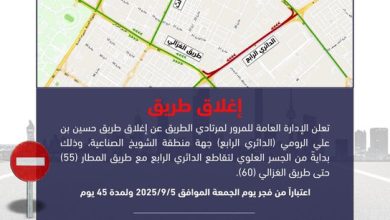 أعلنت الإدارة العامة للمرور لمرتادي الطريق عن إغلاق طريق حسين بن علي الرومي (الدائري الرابع) جهة منطقة الشويخ الصناعية، وذلك…